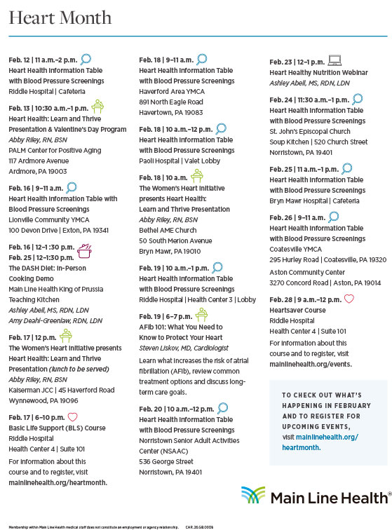 En este Mes del Corazón, el llamado es claro: escuchar al cuerpo, conocer los riesgos y actuar a tiempo puede salvar vidas. Para más información, comuníquese con Main Line Health System al 484-476-1000, ya que este mes cuenta con un calendario de eventos dirigidos celebrar el Mes del Corazón.