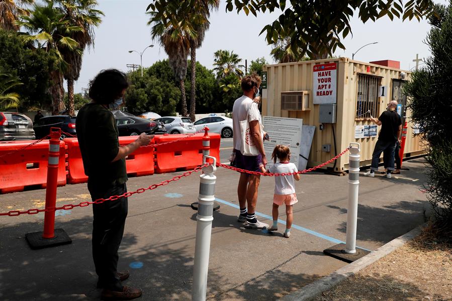 Personas hacen fila en un sitio de pruebas de la covid-19 en Los Ángeles, California (EE.UU.), este 23 de agosto de 2021. (Foto: EFE/Caroline Brehman)