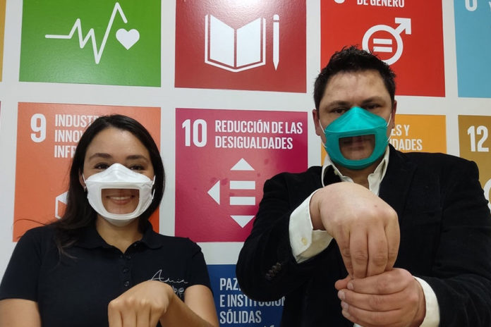 Había que buscar una solución y luego de mucho reflexionar, la encontraron: cubrebocas que tuvieran una ventanilla transparente en el área de la boca, para que las personas sordas oralizadas, como Gutiérrez y Salafranca, puedan seguir leyendo los labios de sus interlocutores.