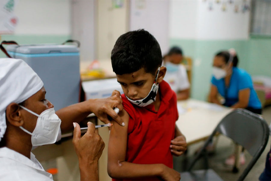 Un niño en Venezuela recibe una dosis de la vacuna contra el coronavirus de Sinopharm el 9 de diciembre de 2021. (Foto: VOA)