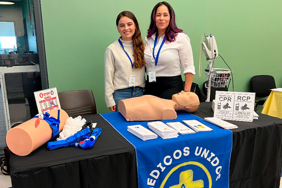 There were different activities available for attendees to enjoy. For example, the Our Voices, Our Vaccines initiative was present, handing out materials designed by community members about COVID-19 and flu vaccination. The University of Pennsylvania’s Dental School provided education about oral health and free dental care supplies. Gail Acosta from Esperanza’s Cyber School provided CPR training and demonstrations. Dr. Nilsa Graciani, Chief STEM Officer at Esperanza and one of the organizers of the health fair, told me that, “Our Champions of Hope encouraged participants to live a healthy lifestyle by staying active and eating a balanced diet. They shared diabetes prevention education, demonstrated the use of VR for physical activity and talked about the nutrition series Vida Sana en Familia. Participants also interacted with our virtual dissection table and virtual patients.”