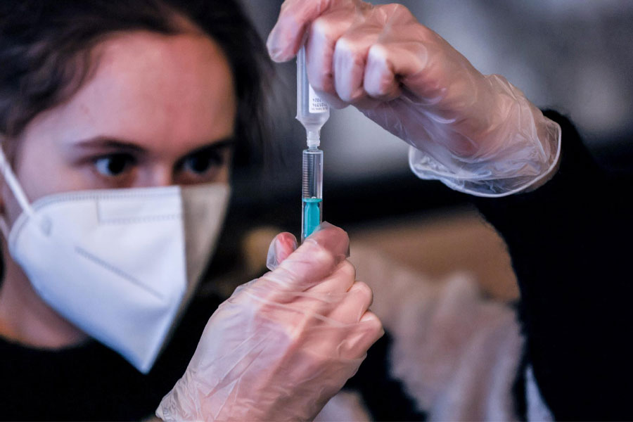 Fotografía de archivo de una estudiante de medicina que anota los signos vitales de una persona adulta durante una sesión de práctica educativa. (Foto: EFE/Felipe Chacon)