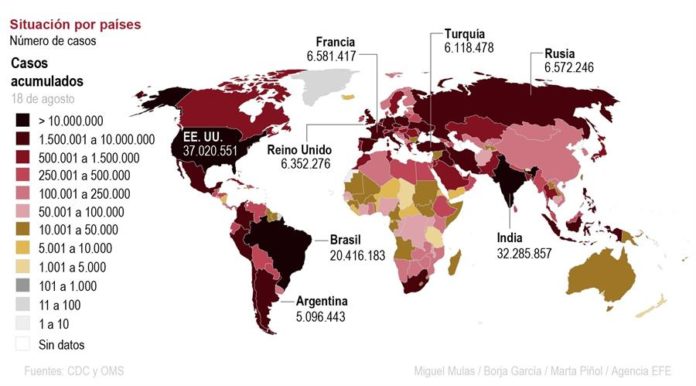 El acumulado de infecciones por el coronavirus supera los 207,7 millones en 20 meses de pandemia.