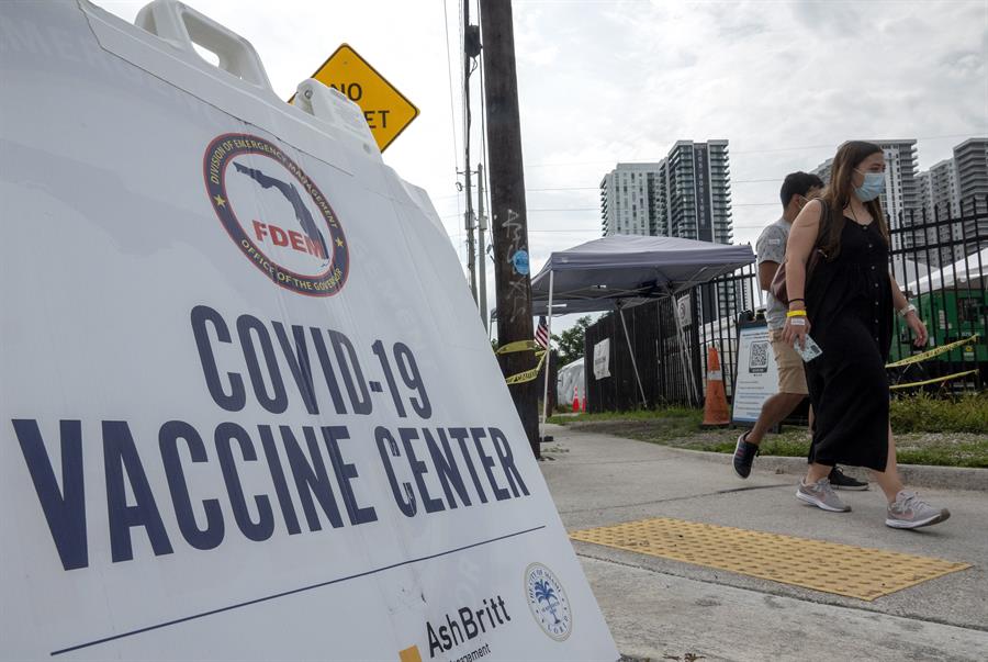 Vista de un letrero que indica dónde se encuentra un centro de vacunación contra la Covid-19 en Miami, Florida, EEUU. (Foto: EFE/CRISTOBAL HERRERA-ULASHKEVICH)