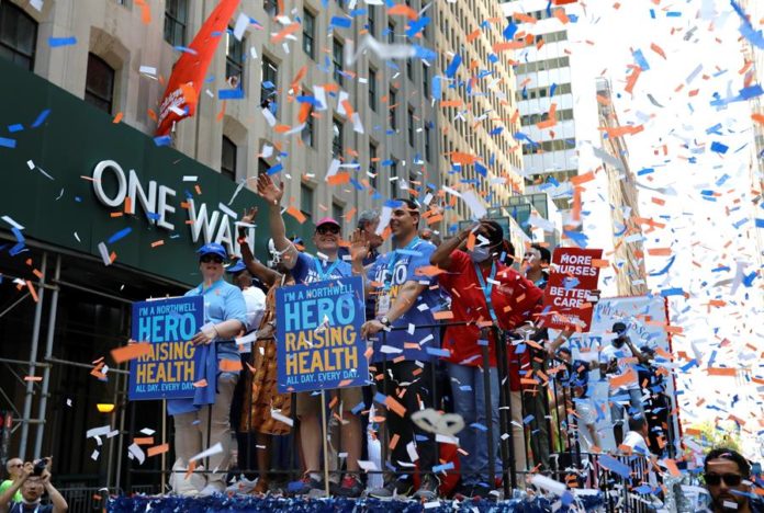 Los grandes hospitales privados de Nueva York, varios de los cuales lideraron la vacunación y también los test de detección de covid, desfilaron a la cabeza y también patrocinaron la mayor parte de la veintena de carrozas que trufaron el evento.