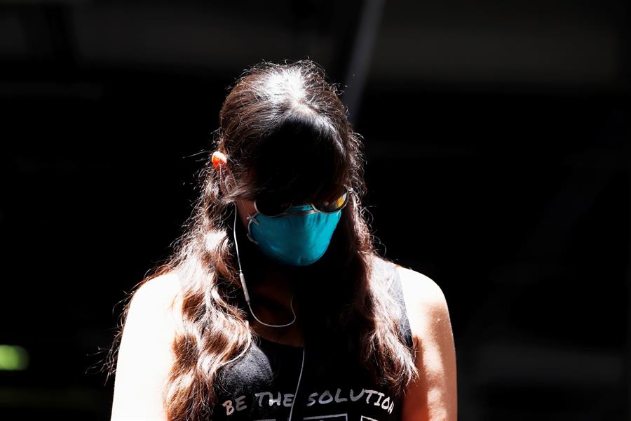PUERTO RICO CORONAVIRUS:USA897. SAN JUAN (PUERTO RICO), 06/04/2020.- Una mujer espera su turno para entrar a un supermercado este lunes en San Juan (Puerto Rico). El intento del Ejecutivo de Puerto Rico de comprar pruebas para detectar el COVID-19 por 40 millones de dólares a una empresa sin experiencia en el sector médico y con vínculos al partido del Gobierno es el último nubarrón sobre el Ejecutivo en medio de la crisis de la pandemia. (Foto: EFE/Thais Llorca)