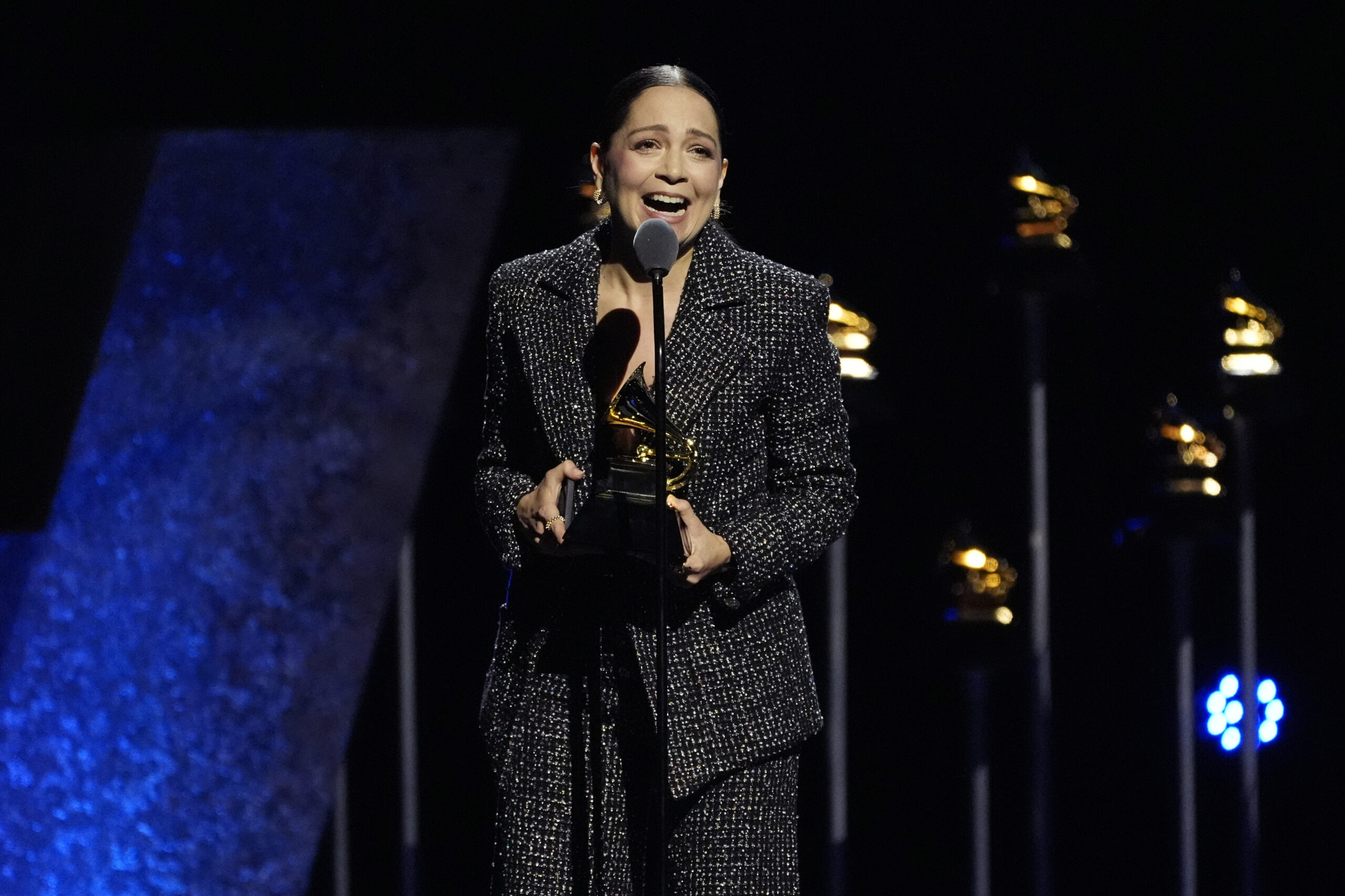 La cantautora se encargó de anunciar el premio de mejor álbum de música regional mexicana (incluyendo tejana) para “GÉNESIS” de Peso Pluma, quien ganó su primer premio en su primera nominación a los Grammy.