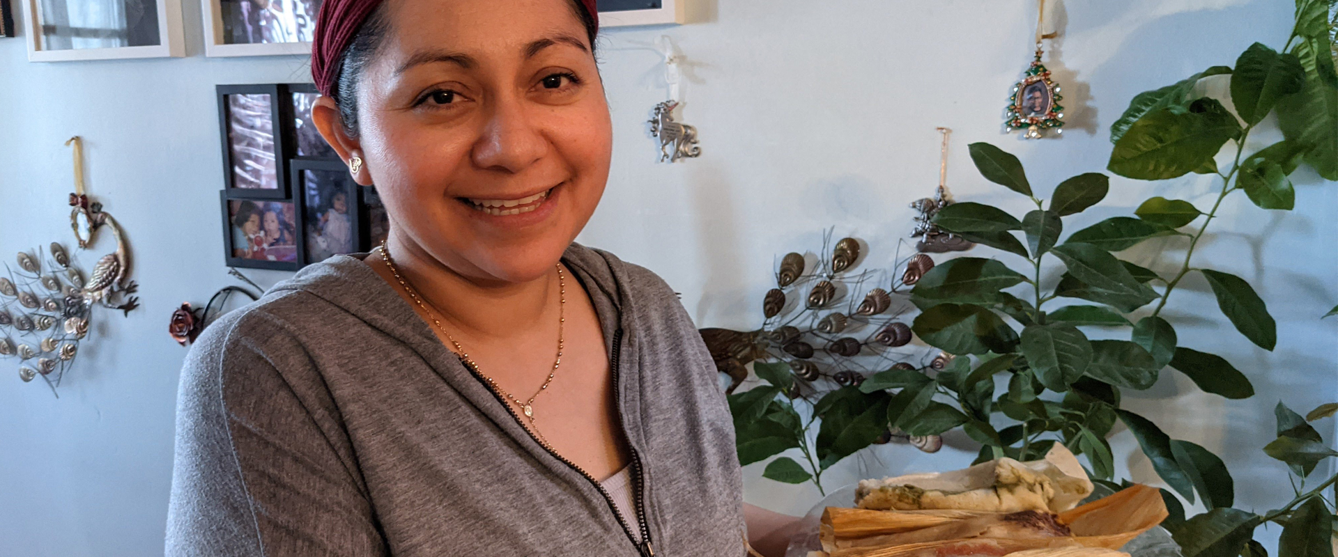 Originaria del estado de Puebla en México, heredó de su madre y abuela el talento de preparar deliciosos platillos, típicos de su región. Cuando llegó a la ciudad de Norristown, instaló un pequeño huerto en el patio trasero de su casa, lo que le permitió cultivar diversos vegetales, desde jitomate y hierbas aromáticas hasta papayas. Para ella, ha sido siempre un deleite cocinar para sus familiares y amigos. Sin embargo, hace unos meses ese gozo se transformó en su única forma de sustento. Como muchos, puso su talento al servicio de su familia.