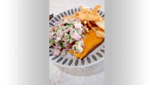 Amiga linda gracias por la publicación del plato….es ceviche de bonito con chicharron de pota …..