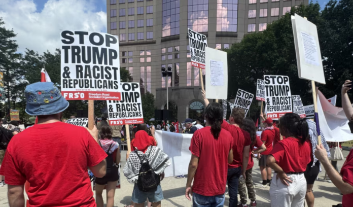MILWAUKEE, EE. UU. / WASHINGTON — Un grupo de activistas denominado “Coalición para marcha contra la RNC” se reunió este lunes en Milwaukee, Wisconsin, para manifestarse en contra de la “agenda republicana” y del mensaje que el partido busca llevar a sus votantes durante la Convención Nacional Republicana que se celebra esta semana.