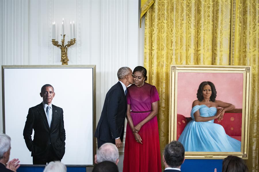 Washington, EE. UU.- Entre vítores, bromas y una dulce nostalgia, el expresidente estadounidense Barack Obama (2009-2017) y la exprimera dama Michelle Obama revelaron este miércoles en la Casa Blanca sus retratos oficiales, que esperan que sirvan de inspiración para las nuevas generaciones.