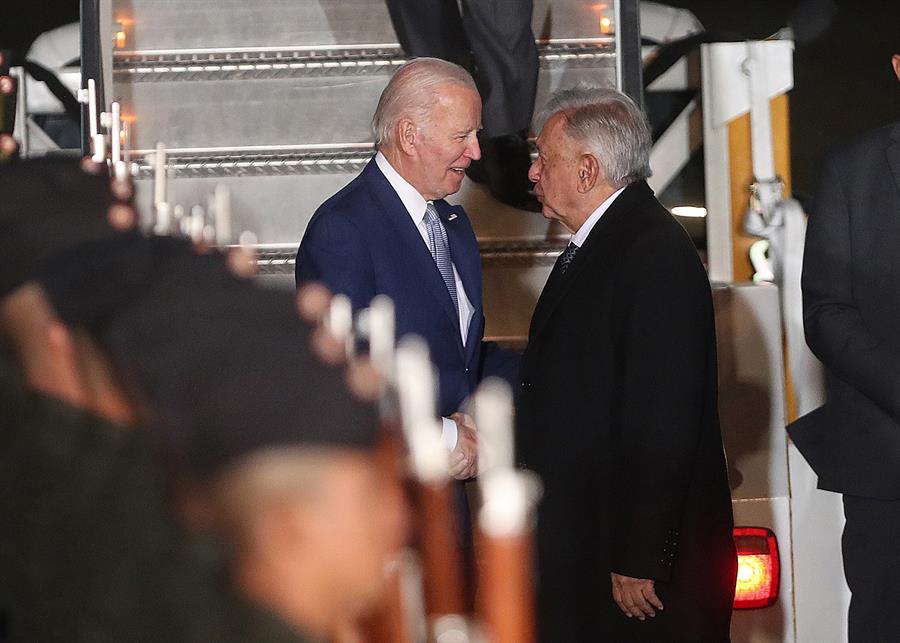 Biden y el presidente mexicano se estrecharon la mano a pie de pista, conversaron unos minutos y posteriormente abordaron juntos la Bestia, el vehículo blindado que traslada al presidente estadounidense, para dirigirse hacia el hotel donde se hospedará el mandatario, en el acomodado barrio de Polanco de la capital mexicana.
