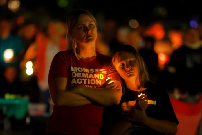 Pocas horas después de que una persona abriera fuego a través de las ventanas de una iglesia católica en Minneapolis, matando a dos niños e hiriendo a 17 personas, cientos de personas se reunieron en el gimnasio de una escuela cercana, abrazándose y secándose las lágrimas durante una vigilia junto al gobernador Tim Walz y miembros del clero.