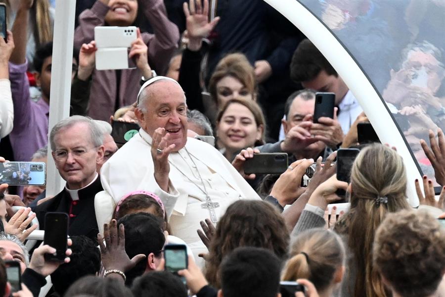 El papa Francisco saluda a su llegada para presidir la audiencia general semanal en la plaza de San Pedro del Vaticano, este miércoles. (Foto: EFE/Maurizio Brambatti)
