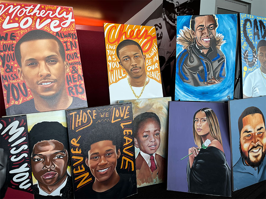 Desiree Norwood, quien pinta con acrílicos, ha estado ayudando a Lomax desde 2021. Como a todos los artistas, Lomax le paga. Ha completado unos 30 retratos, siempre después de sentarse con la familia de la víctima. “Obtengo una historia de fondo para poder incorporarla en el retrato”, dijo. “A veces lloramos. A veces rezamos. A veces tratamos de animarnos mutuamente. Es difícil de hacer”.