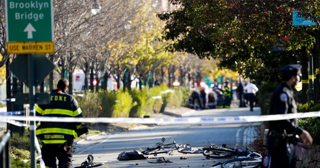 Con un camión que había alquilado, el hombre atropelló a un grupo de personas que paseaban en bicicleta en Manhattan y luego salió del vehículo que conducía gritando «Alá es grande» y portando una pistola de perdigones y otra de «paintball».