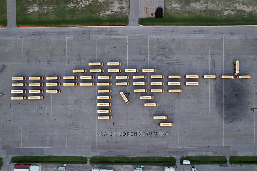 El «Museo de los Niños de la Asociación Nacional del Rifle (NRA)», una poderosa organización que financia a políticos que defiendan a ultranza el derecho a poseer armas recogido en la Segunda Enmienda de la Constitución de EE.UU., tiene su sede en una flota de 52 autobuses escolares amarillos.