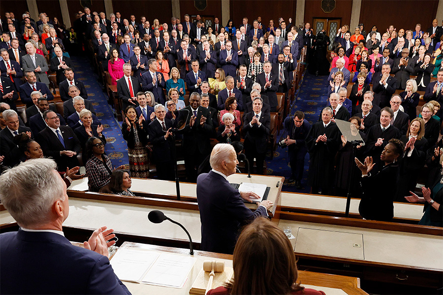 El contexto del discurso anual fue sumamente distinto al de los dos años anteriores, ya que ahora hay un presidente de la Cámara de Representantes republicano, Kevin McCarthy, que le costó mucho ocupar la silla después de que un grupo de republicanos lo mantuviera en vilo negándole su voto.