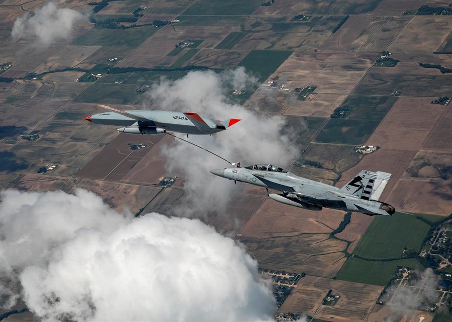 Washington, EE.UU.- La Marina de Estados Unidos usó por primera vez un avión cisterna no tripulado para reabastecer en vuelo a un avión de combate F/A-18E-F Super Hornet, informó este martes el Pentágono.