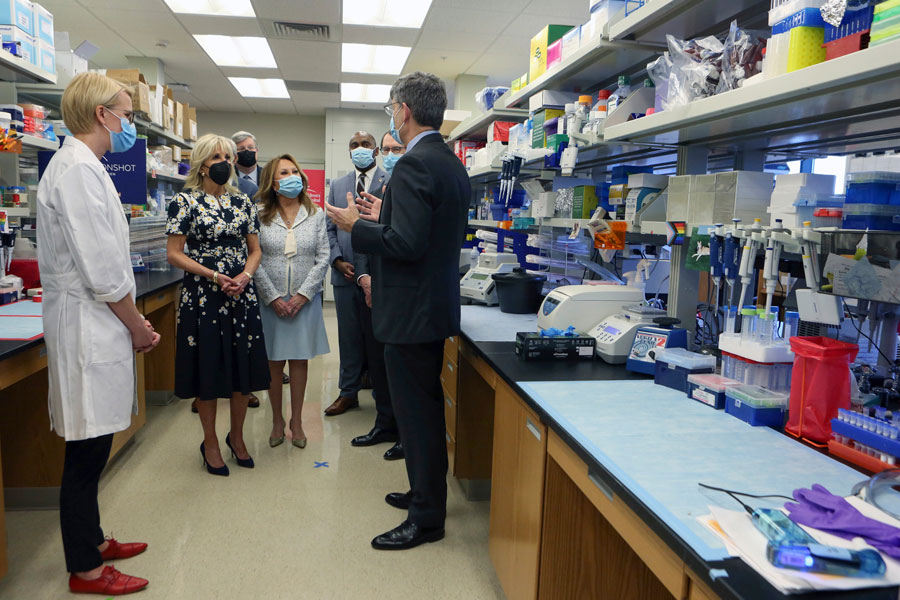 La primera dama estadounidense, Jill Biden, visitó al primer grupo en el hospital el viernes.