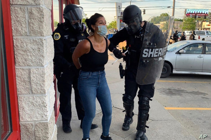 Andrea Sahouri, reportera de The Des Moines Register, fue rociada con gas pimienta y detenida brevemente después de que la policía y los manifestantes se enfrentaran durante la protesta por la muerte de George Floyd mientras estaba bajo custodia policial en Minneapolis, Minnesota. En ese momento, Sahouri estaba con su entonces novio, Spenser Robnett, quien enfrenta los mismos cargos de no dispersarse e interferir en actos oficiales.