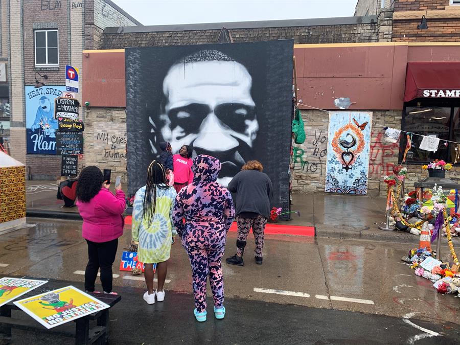 En la Plaza George Floyd Jr., rebautizada así en agosto del año pasado, también estaban recordando al difunto las hermanas Lachael, junto a su madre, abuela y un par de tías, todas mujeres.