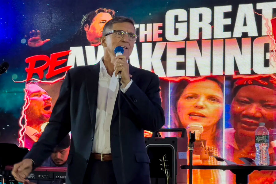 En Texas, en noviembre del año pasado, Flynn le dijo a la multitud que “si queremos tener una nación al servicio de Dios, debemos tener una religión”.