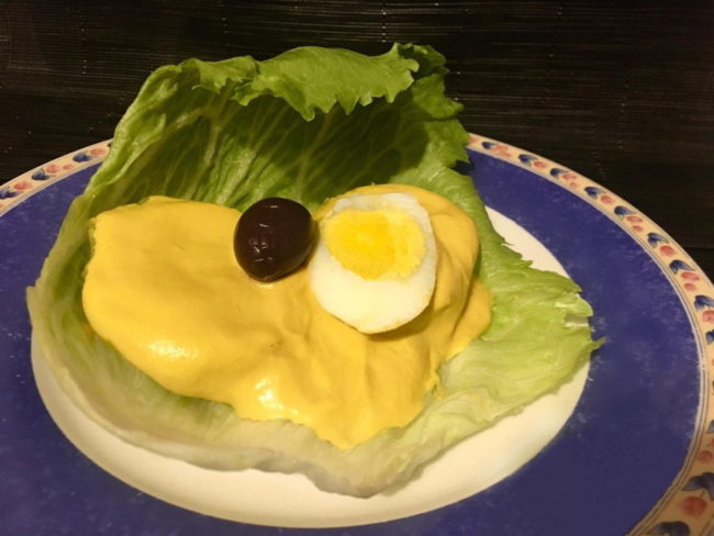 Independientemente de la historia de este sabroso plato, la preparación de la salsa varía de generación a generación. Mi versión es la siguiente: primero, sancochar las papas amarillas y los huevos; aparte reservar hojas de lechuga y aceitunas negras para la guarnición.