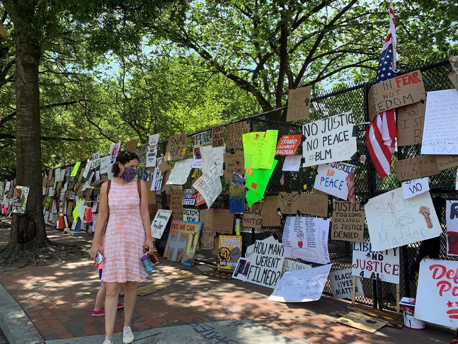 Washington, (EFE). – Fue erigida en cuestión de horas, en el fragor de las protestas que sacudieron a Estados Unidos a raíz de la muerte de George Floyd, pero hoy la valla que el presidente Donald Trump puso entre él y los manifestantes frente a la Casa Blanca se ha transformado en un símbolo contra la violencia racial y de unión en medio de la diversidad.