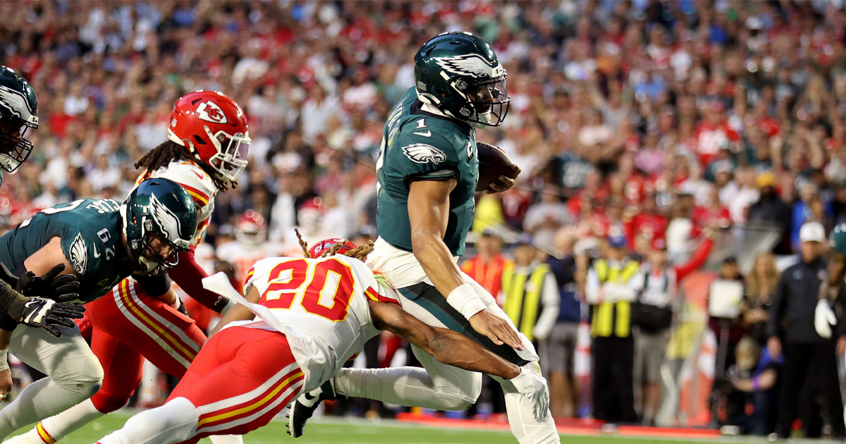 Por su parte, Jalen Hurts, el joven mariscal de campo de los Eagles, fue el gran protagonista de una vibrante primera mitad en el State Farm Stadium de Glendale (Arizona, EE.UU.)
