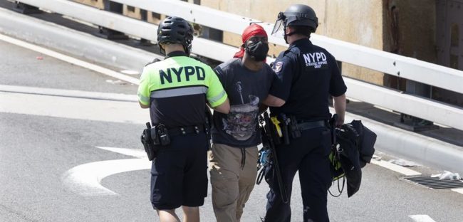 Cientos de participantes de la «Marcha de Liberación Negra» partieron del estadio Barclays Center, punto de reunión de BLM, y atravesaron el icónico puente de Brooklyn hasta llegar a la Alcaldía, en el sur de Manhattan, donde había se desplegado un gran número de agentes de la Policía local (NYPD, en inglés) y se produjeron enfrentamientos.