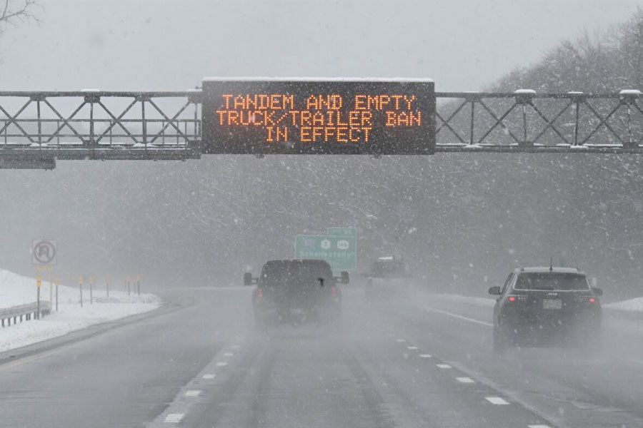 La autopista New York Thruway durante una tormenta invernal, el 14 de marzo de 2023, en Albany, Nueva York. (Foto: AP/Hans Pennink/Archivo)