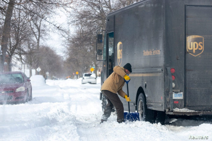 En Chicago las nevadas que alcanzaron los 46 centímetros (18 pulgadas) de acumulación obligaron a las escuelas públicas a cancelar las clases presenciales el martes. Horas antes, a lo largo del generalmente cálido Golfo de México, el esquiador Sam Fagg se encontró con nieve en la playa de Galveston, Texas.