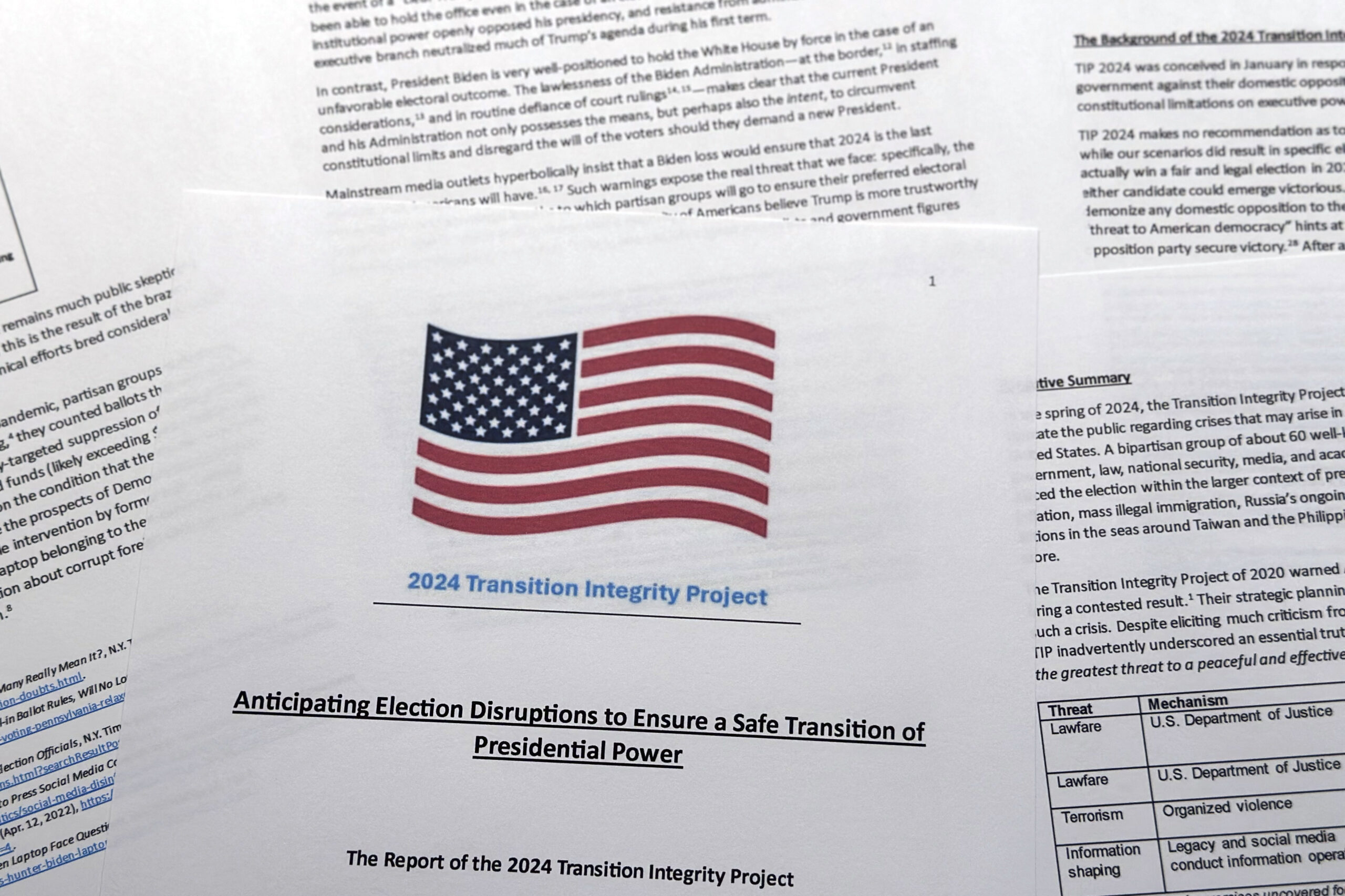 El informe de The Heritage Foundation detalla los resultados de dos ejercicios de simulación que, asegura, fueron llevados a cabo por un grupo bipartidista al que se negó a identificar por motivos de seguridad. El documento menciona varias lecciones y hallazgos centrales, los cuales giran principalmente en torno a posibles intentos de la izquierda de interferir en los comicios.