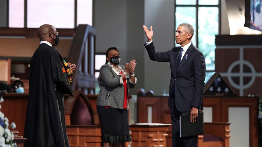 Sin llegar a mencionar el nombre de Trump, Obama (2009-2017) ofreció un discurso combativo durante el funeral en Atlanta (Georgia) del congresista afroamericano John Lewis, histórico líder de los derechos civiles que fue detenido decenas de veces por defender el derecho de la comunidad afroamericana de acudir a las urnas.