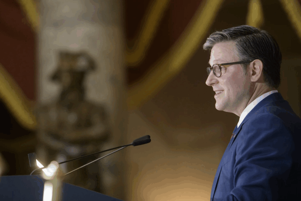 Speaker of the House Mike Johnson, R-La., speaks during a Congressional Gold Medal ceremony for three-time Tour de France winner Greg LeMond at the Capitol, Wednesday, July 9, 2025, in Washington. (Photo: AP/Rod Lamkey, Jr.)
