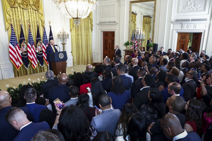 Durante la recepción, varios funcionarios afroamericanos desfilaron en el podio de Trump para agradecerle por su gestión y lo defendieron de acusaciones en su contra.