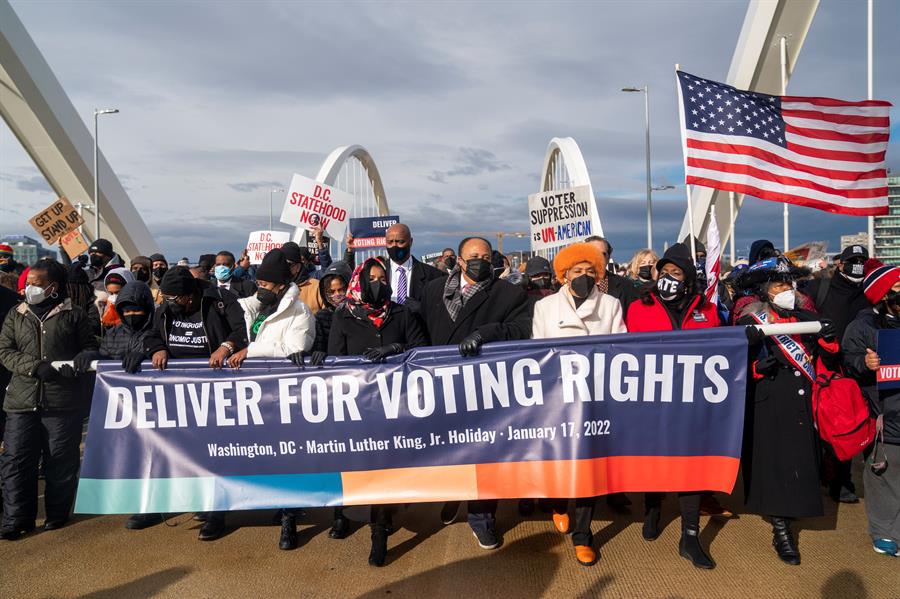 Los manifestantes y la familia de Luther King se unieron para protestar ante los intentos de los republicanos de restringir el voto en los estados en que gobiernan, que afectan sobre todo a las minorías y con las elecciones legislativas de noviembre próximo a la vista.