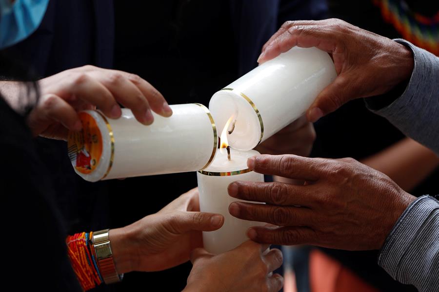 Fotografía de archivo de víctimas de las Farc encendiendo velas en Caldono, Cauca (Colombia). (Foto: EFE/Ernesto Guzmán Jr)