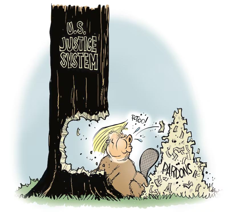 Entre los mayores abusos de poder presidencial de Trump se encuentran los indultos a Rudy Giuliani y a decenas de otros acusados de intentar revertir las elecciones de 2020; al donante de campaña y defraudador convicto Trevor Milton; al magnate de las criptomonedas Changpeng Zhao; y al expresidente hondureño Juan Orlando Hernández, quien había sido condenado a 45 años de prisión por narcotráfico.
