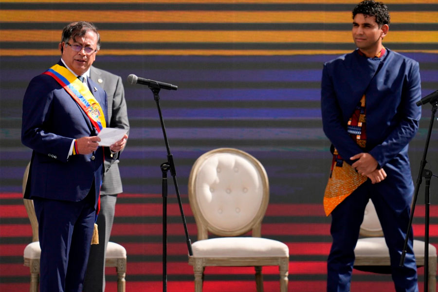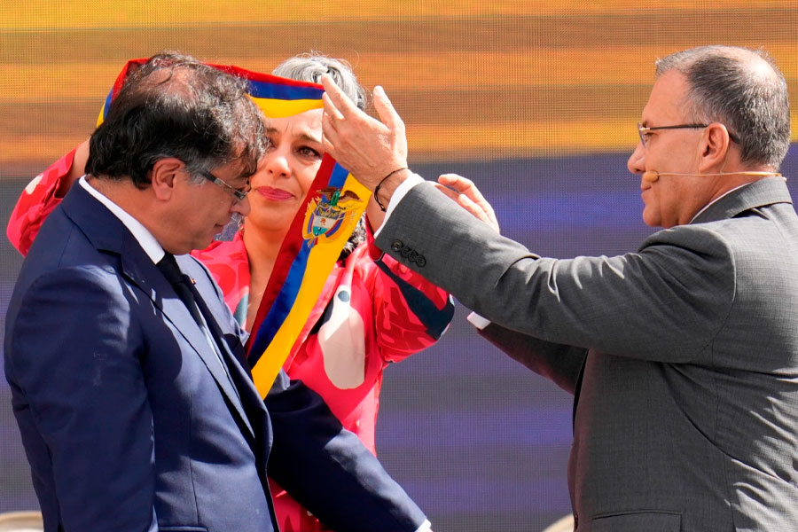 Antes de la asunción oficial, Petro asistió a varias ceremonias simbólicas. En la Sierra Nevada de Santa Marta, al norte del país, los indígenas aruhacos le dieron su “bendición”. Uno de los mamos -la máxima jerarquía de la comunidad- le pidió dar respuesta a las demandas de la sociedad y le entregó un bastón que representa la sabiduría.
