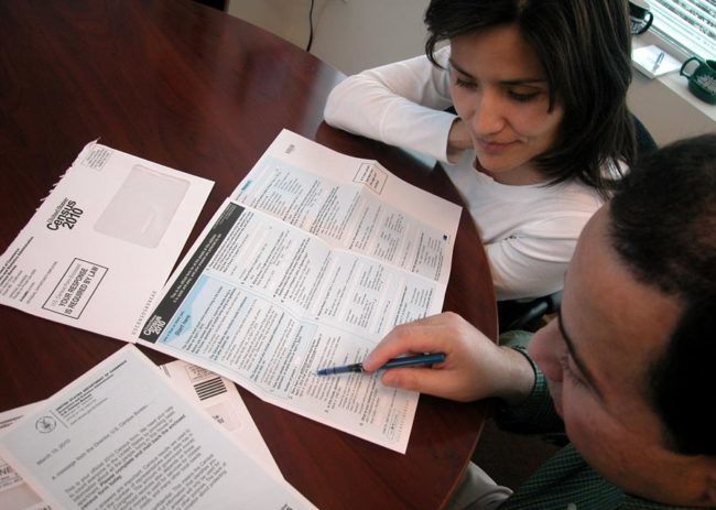Una familia hispana repasa las preguntas del formulario del Censo. EFE/Archivo