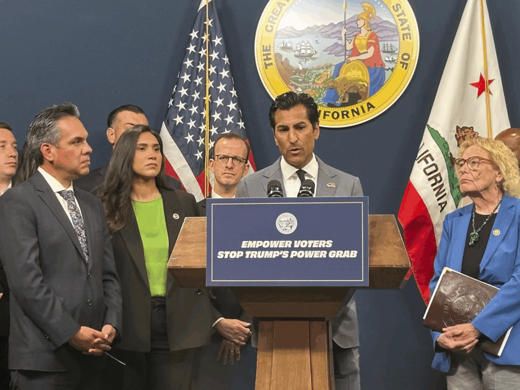 California Assembly Speaker Robert Rivas announces a legislative package to advance a partisan effort to redraw California congressional map at a press conference on Monday, Aug. 18, 2025, in Sacramento, Calif. (Photo: AP/Tran Nguyen)