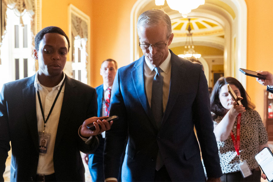 El líder de la mayoría del Senado, John Thune, de Dakota del Sur, pasó la noche tratando de lograr acuerdos de último minuto entre los miembros de su partido preocupados porque las reducciones al Medicaid del proyecto de ley dejen a millones sin atención médica y su flanco más conservador, que quiere recortes aún más profundos para contener los déficits que se disparan con los recortes fiscales.
