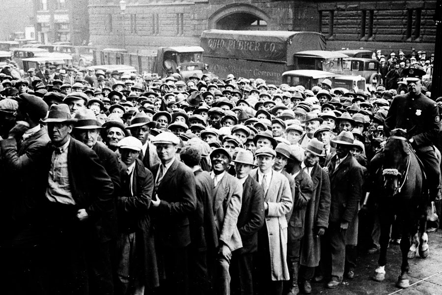 La Gran Depresión comenzó con el llamado “Martes Negro” el 29 de octubre de 1929, cuando una venta de pánico provocó la caída del mercado de valores, eliminando a miles de inversores que habían pedido grandes préstamos. A medida que la demanda del consumidor disminuía, las empresas de fabricación despedían trabajadores y cerraban fábricas.