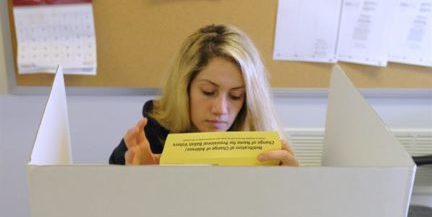 Una mujer vota en una cabina de votación. EFE/Michael Reynolds/Archivo