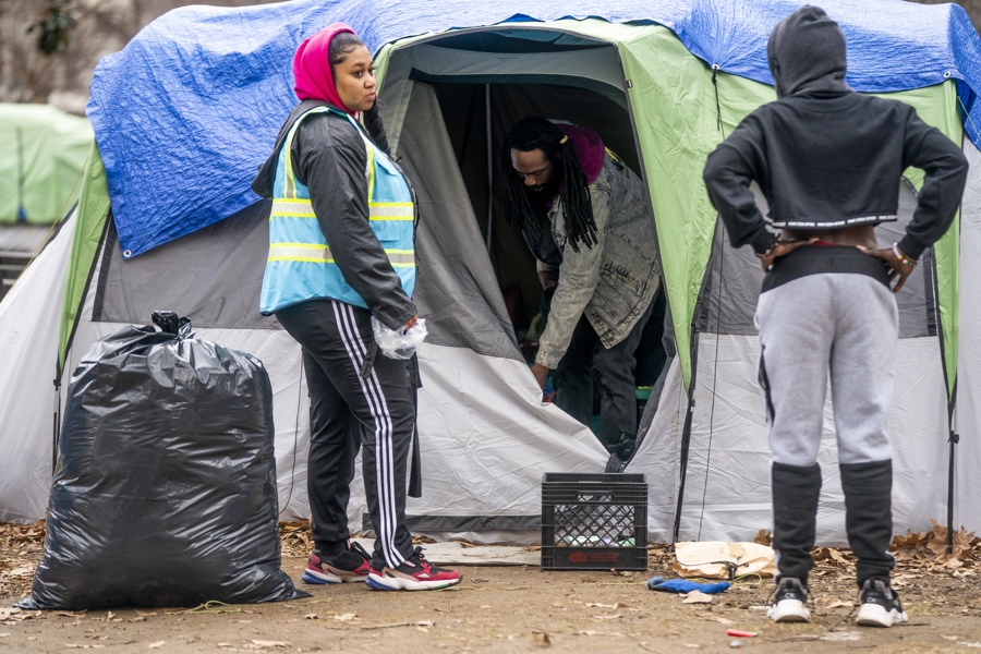Fotografía de archivo de una casa de campaña de una persona sin hogar en Washington. EFE/ Shawn Thew