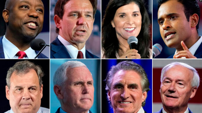 Asa Hutchinson (0,9 %): El exgobernador de Arkansas fue el último aspirante en ser confirmado. Al igual que Pence, Hutchinson se precia de ser «conservador consistente» y basa su estrategia en la política de la «vieja escuela», con un enfoque en volver «a encarrilar la economía», asegurar la frontera y combatir el crimen.