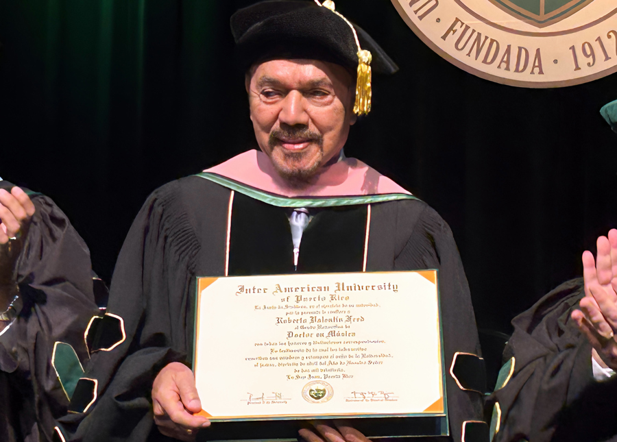 Roberto Valentín Fred, nombre verdadero del músico boricua, fue posteriormente condecorado por el presidente de la Universidad Interamericana, Rafael Ramírez Rivera y su rector, Alex Casiano.