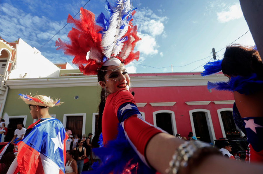 Personas participan en un desfile durante la edición 56 de las Fiestas de la Calle San Sebastián, dedicadas al cineasta Jacobo Morales, este jueves en San Juan (Puerto Rico). (Foto: EFE/Thais Llorca)